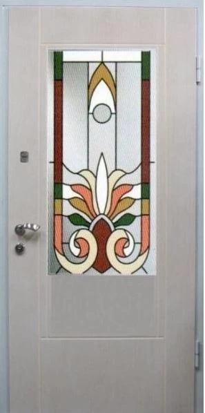 Входные двери в Сельцо с применением декора витражом изготавливаются из стального профиля, придающего прочность конструкции, а сама витражная вставка обладает высокой взломостойкостью, поскольку для витражных композиций используется специальное стекло, обработанное особым образом. Усилить надежность витражного элемента можно с помощью использования декоративных кованных решеток.